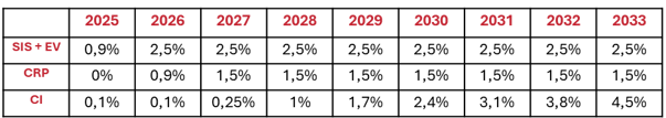 Se establece una cotización de cargo del empleador de un 8,5% de la remuneración imponible del trabajador. Esta cotización se incrementará gradualmente hasta completarse en el año 2033: